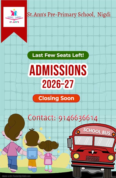 St Ann’s Pre-primary school, started in 1984, is one of the oldest pre-schools in PCMC area. We take pride in our rich history and commitment to quality education. We provide a totally balanced environment by offering comprehensive education through a developmental approach. The school environment promotes order, independence, a love for learning, a connection to the world and a sense of social responsibility.